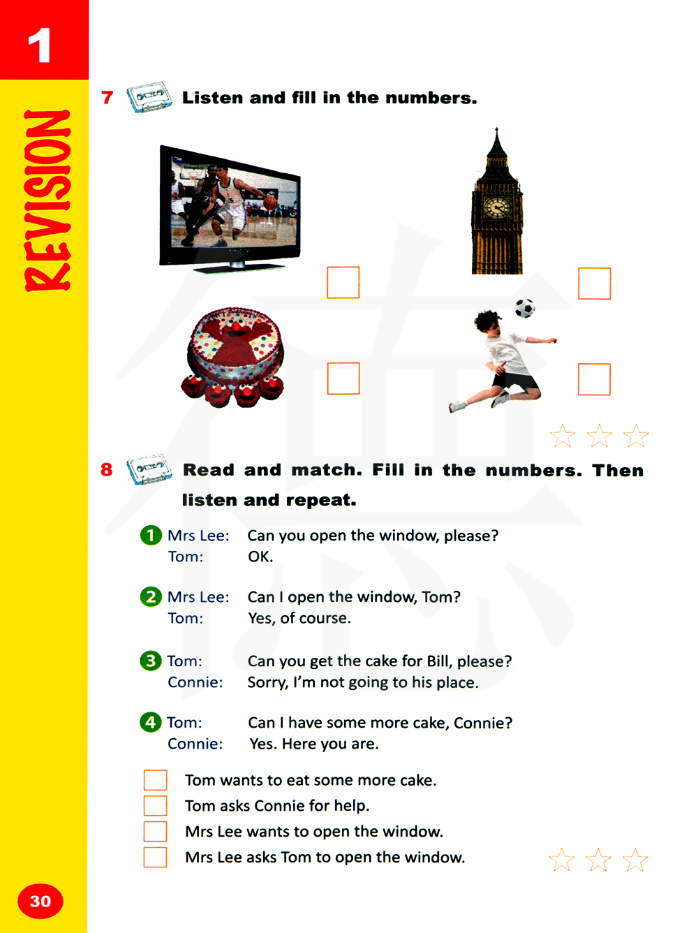 读一读并配对。填数字。然后听一听并重复。