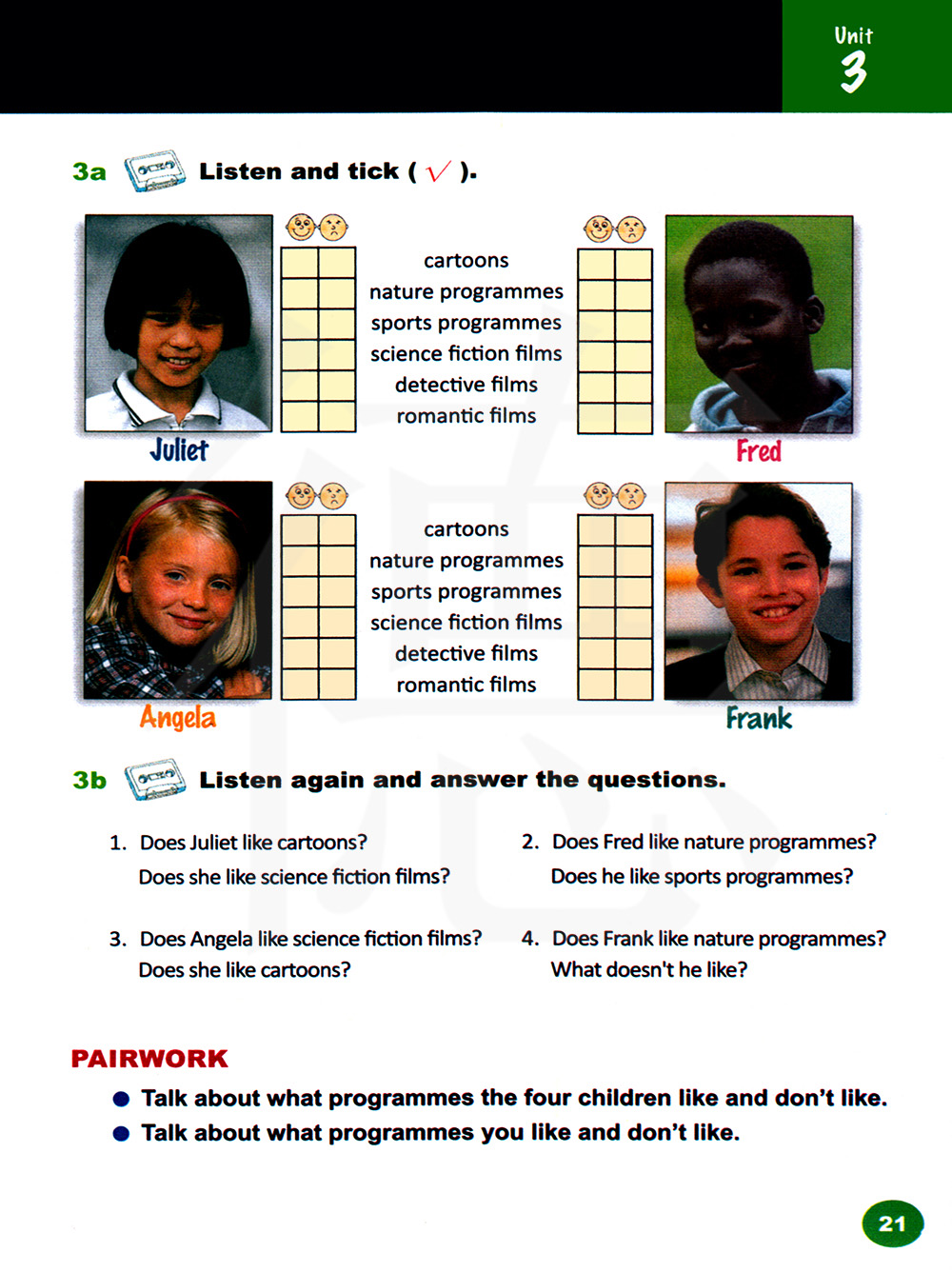 谈谈四个小孩喜欢和不喜欢的节目。