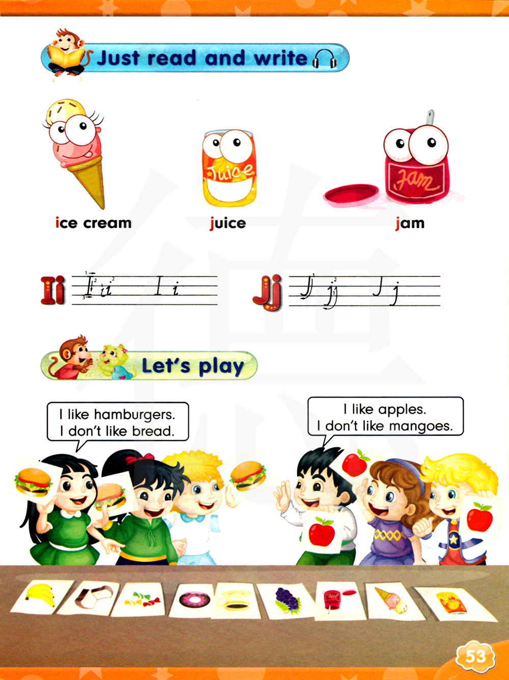 我喜欢吃汉堡包,我不喜欢吃面包。