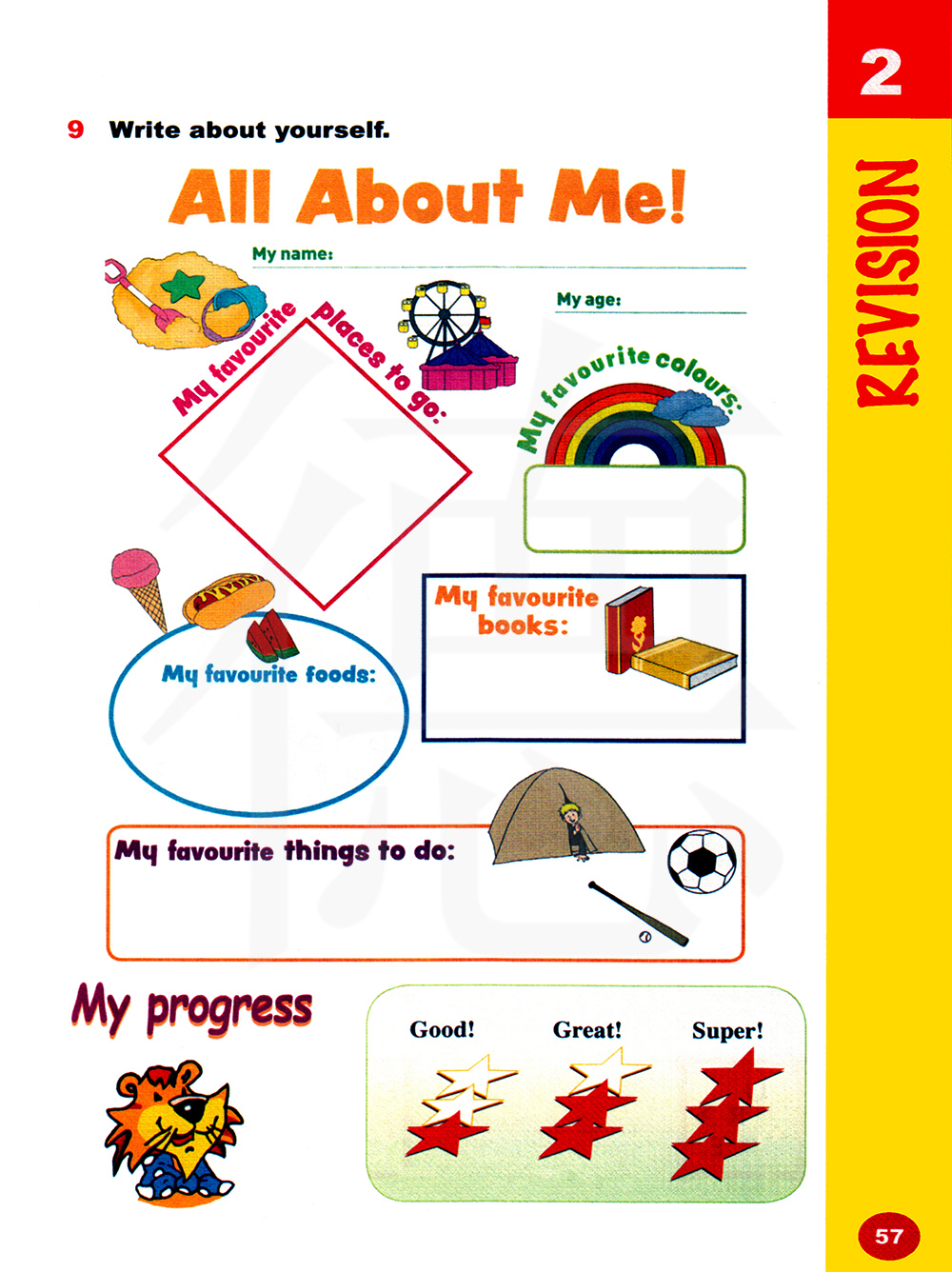 你的名字是什么?你多大了?你最喜欢去的地方是哪里?你最喜欢的颜色、食物、书籍是什么?你最喜欢做的事又是什么?快来填填吧!