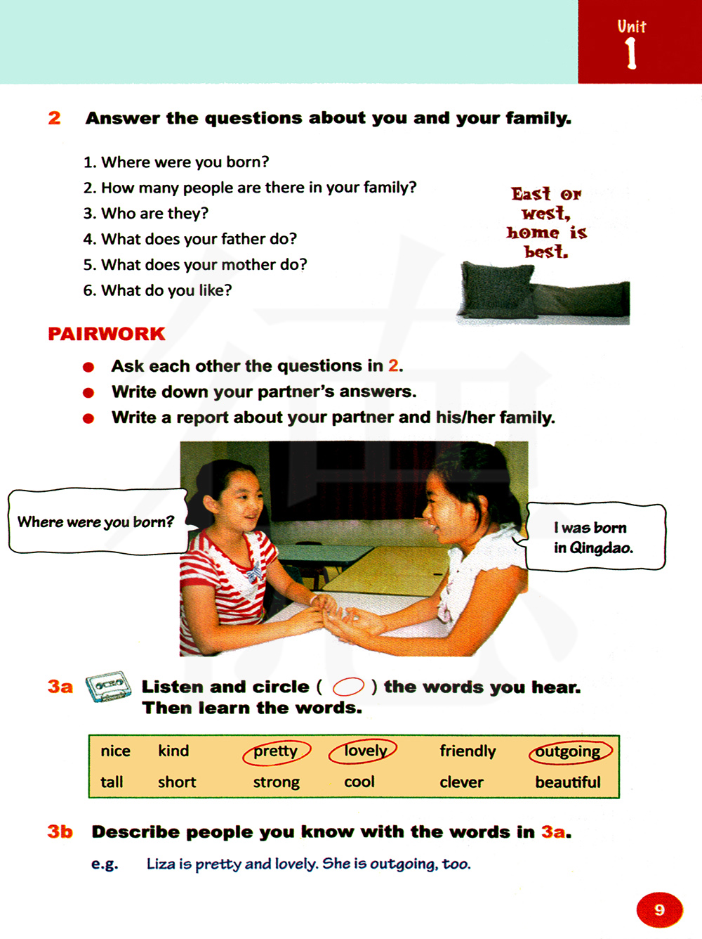 你在哪里出生的? 你家里有多少人? 他们是谁? 你爸爸是做什么的? 你喜欢什么?