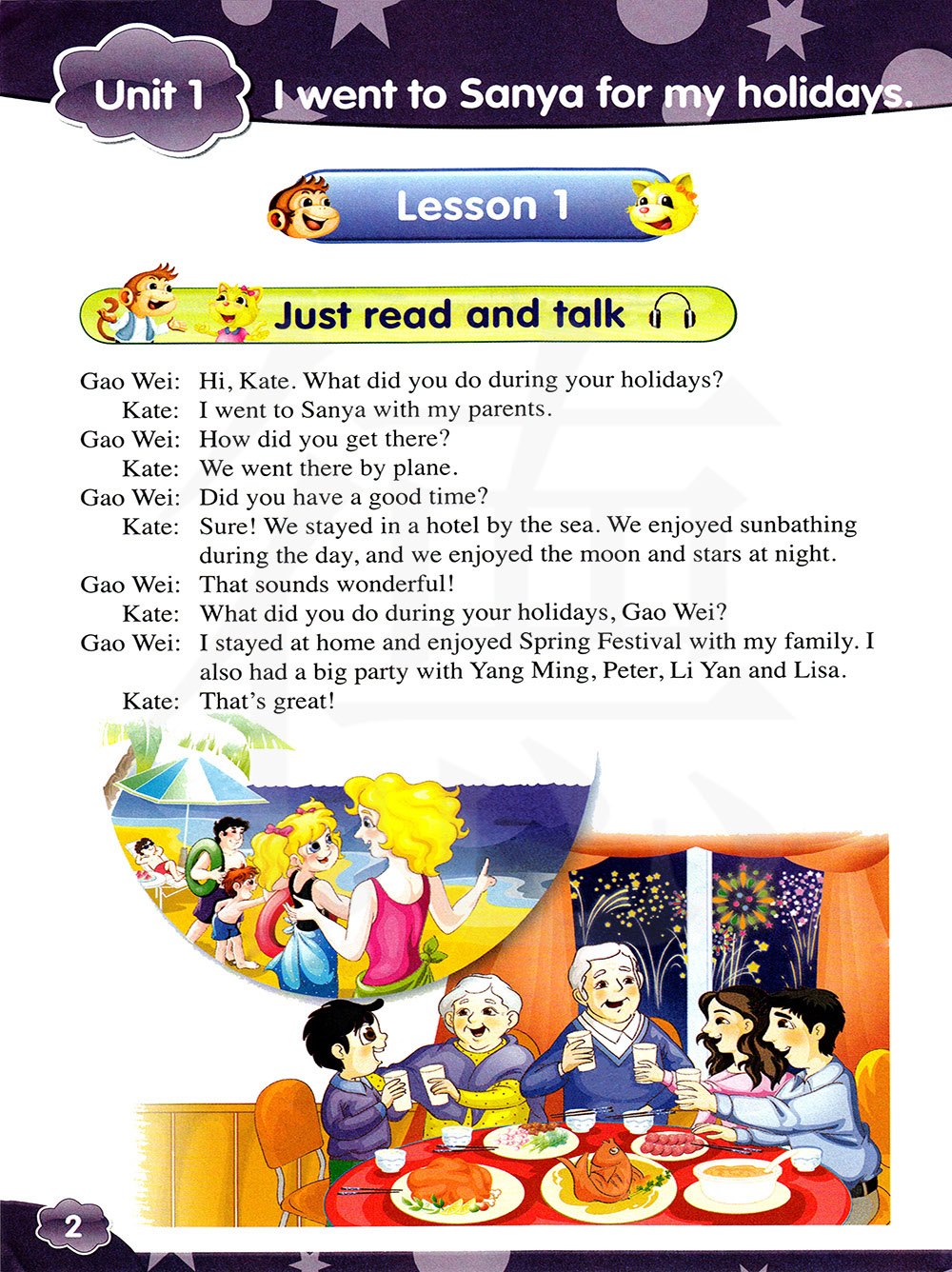 你好,凯特。你假期做了什么?我和我的父母去了三亚。