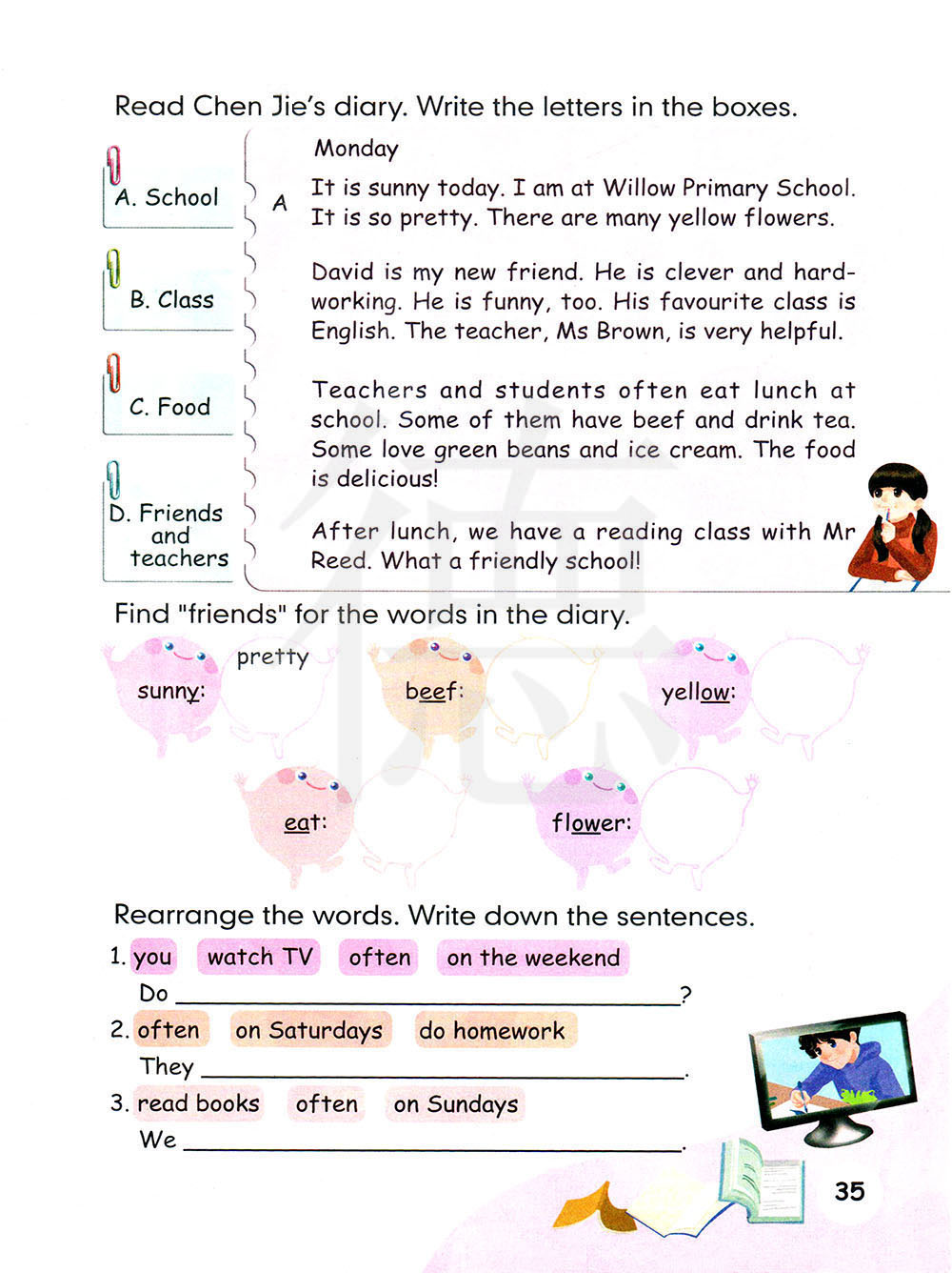 大卫是我的新朋友。他即聪明又勤奋。他也很有趣。他最喜欢的课程是英语。英语老师—布朗女士非常乐于助人。