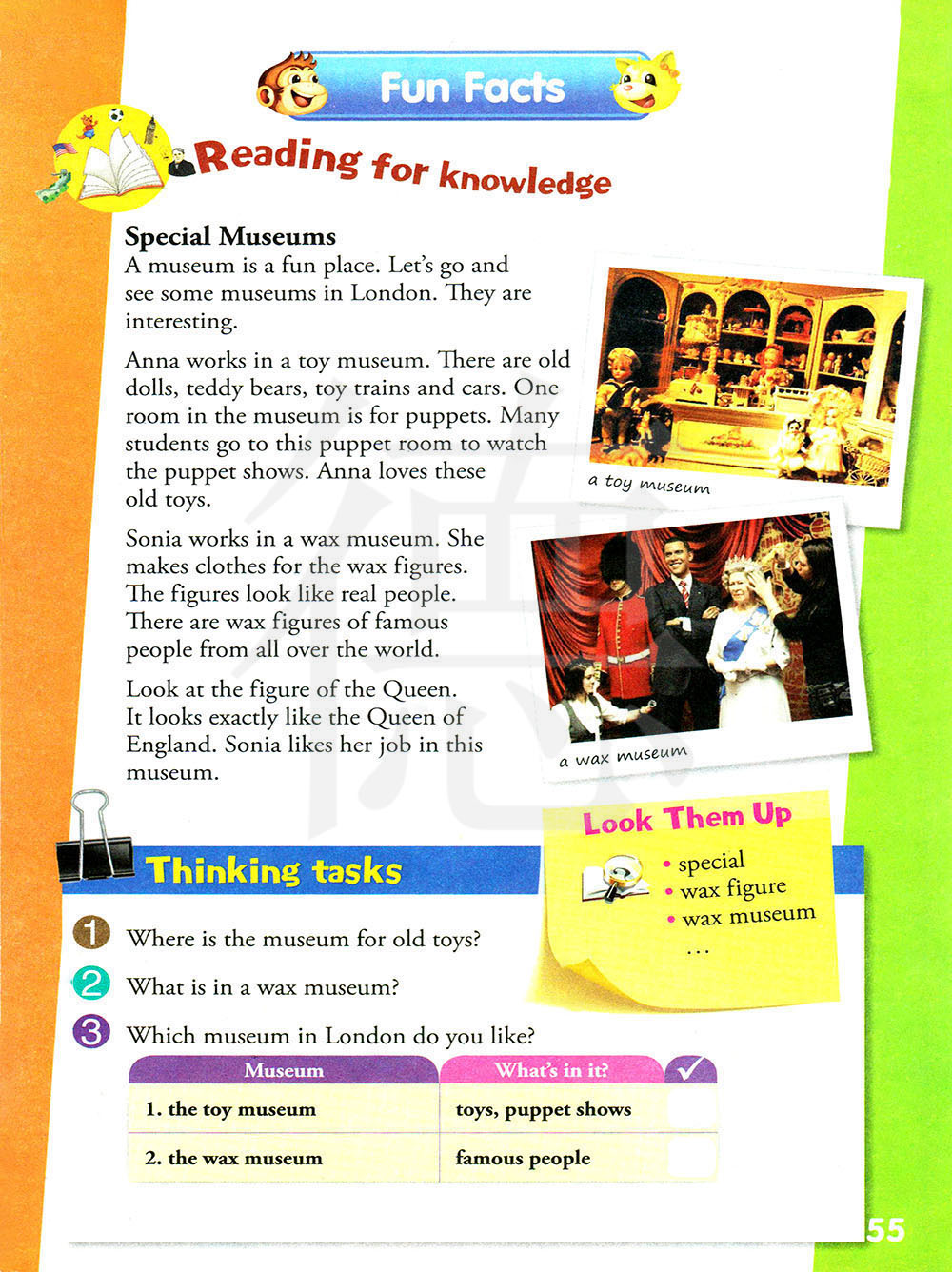 看看女王的蜡像。它看起来和英国女王像极了。索尼亚喜欢她在这个博物馆里的工作。