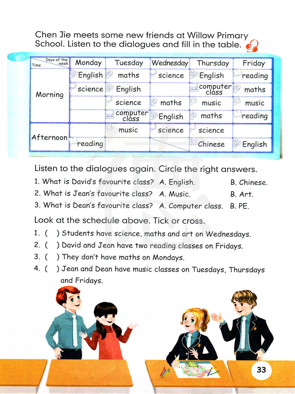 吉恩和迪安在星期二,星期四和星期五有音乐课。