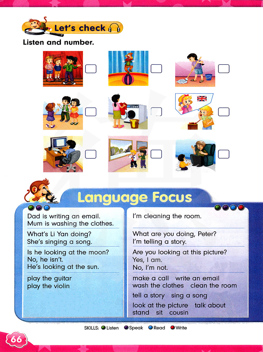 讲故事 唱歌 看图片 谈论 站立 表(堂)兄弟;表(堂)姐妹