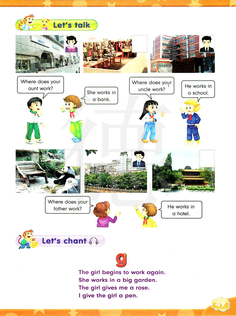 这个女孩又开始工作了。她在一个大花园里工作。这个女孩给了我一朵玫瑰花。我给了这个女孩一支钢笔。