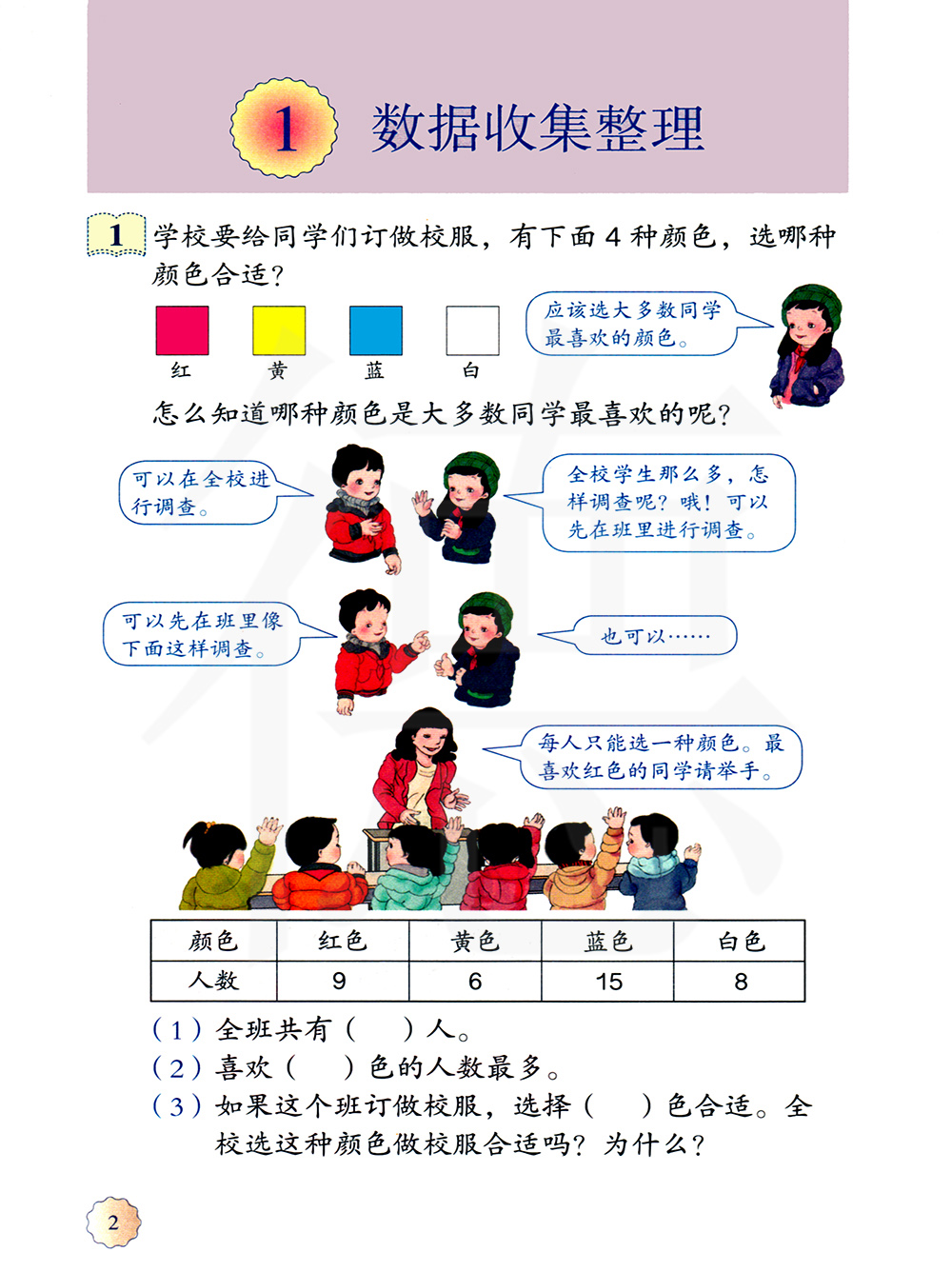 1、用画“正”字的方法收集数据。 2、用统计图表来表示数据的情况。 3、根据统计图表可以做出一些判断。 4、数据收集---整理---分析表格。