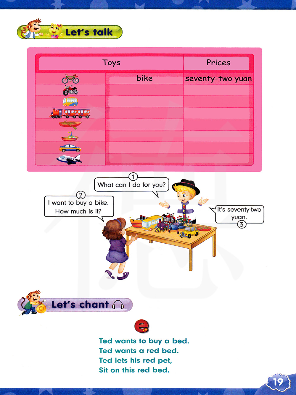 特德想买一张床。特德想要一张红色的床。特德让他的红色宠物,坐在这张红色的床上。