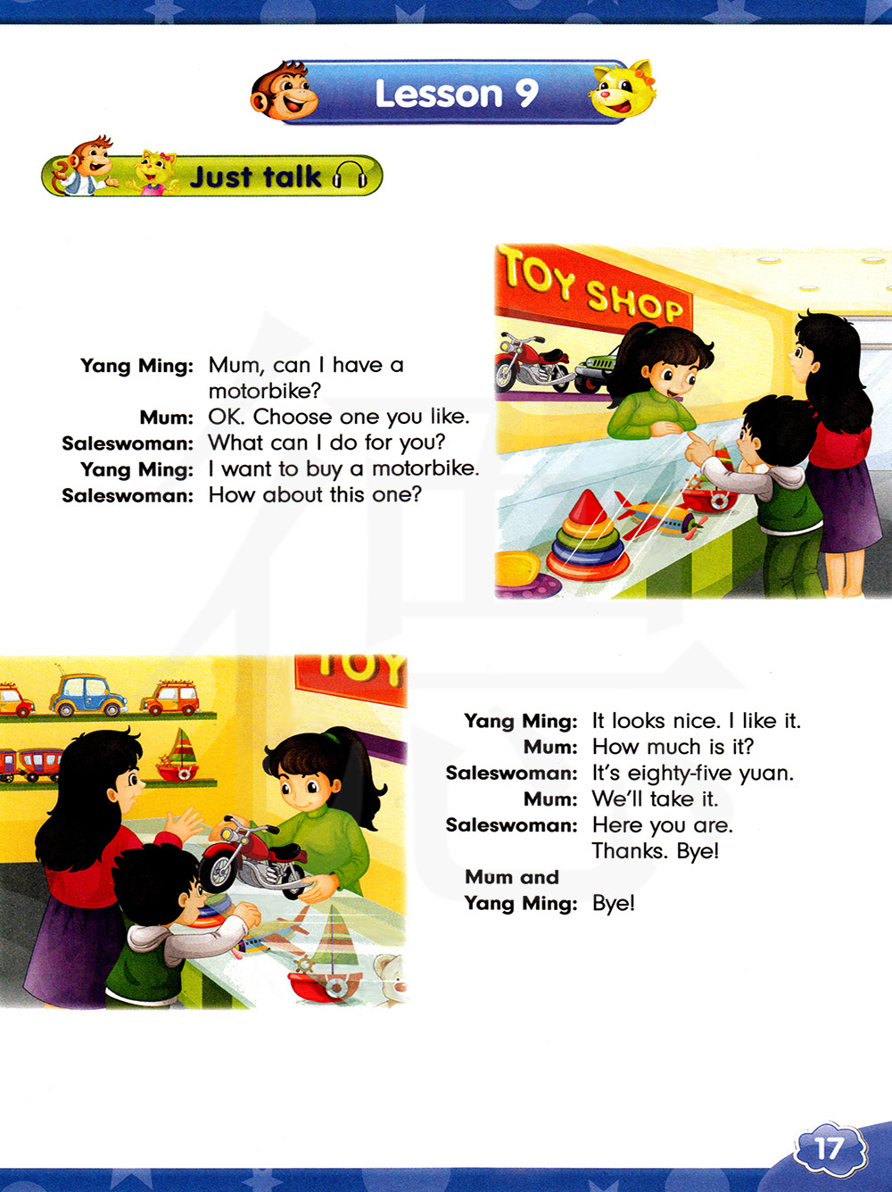 妈妈,我可以买一辆摩托车吗?好的。选一辆你喜欢的。