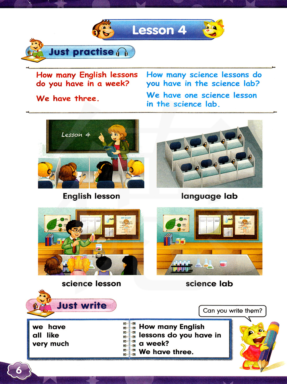 你们在科学实验室上几节科学课。我们在科学实验室上一节科学课。