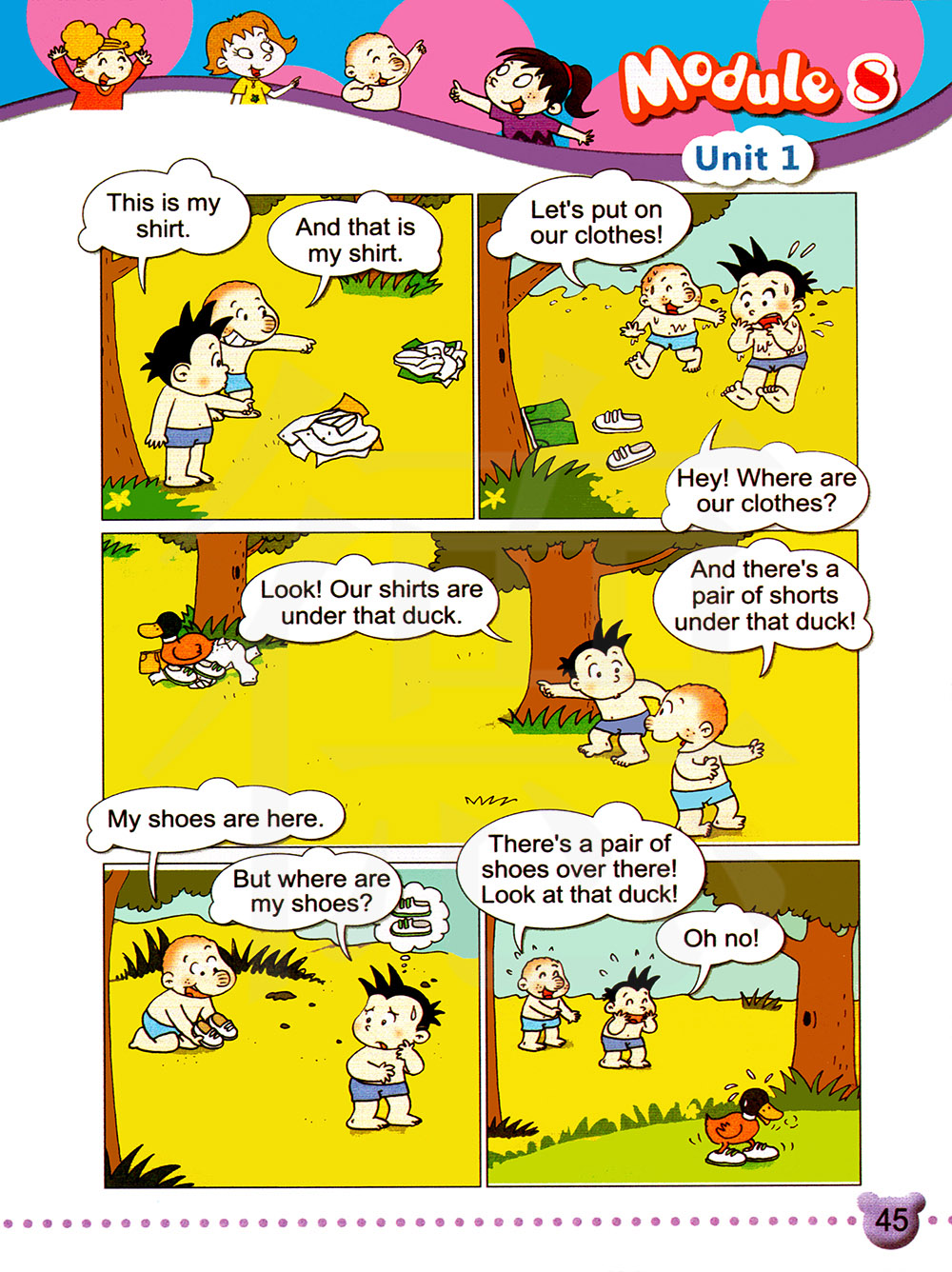 那边有一双鞋子!看那只鸭子!