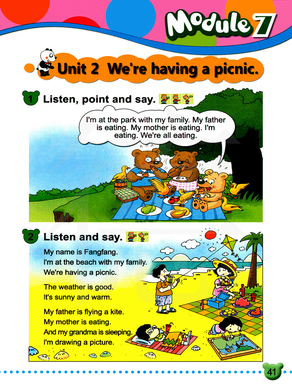 我的名字叫芳芳。我和家人在海滩。我们正在野餐。