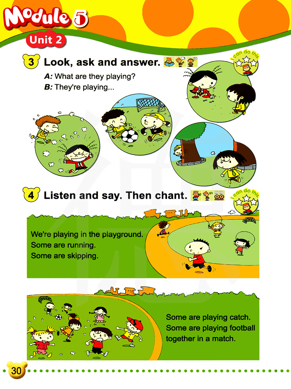 我们在操场上玩耍。有些在跑步。有些在跳绳。有些在追赶。有些在比赛踢足球。