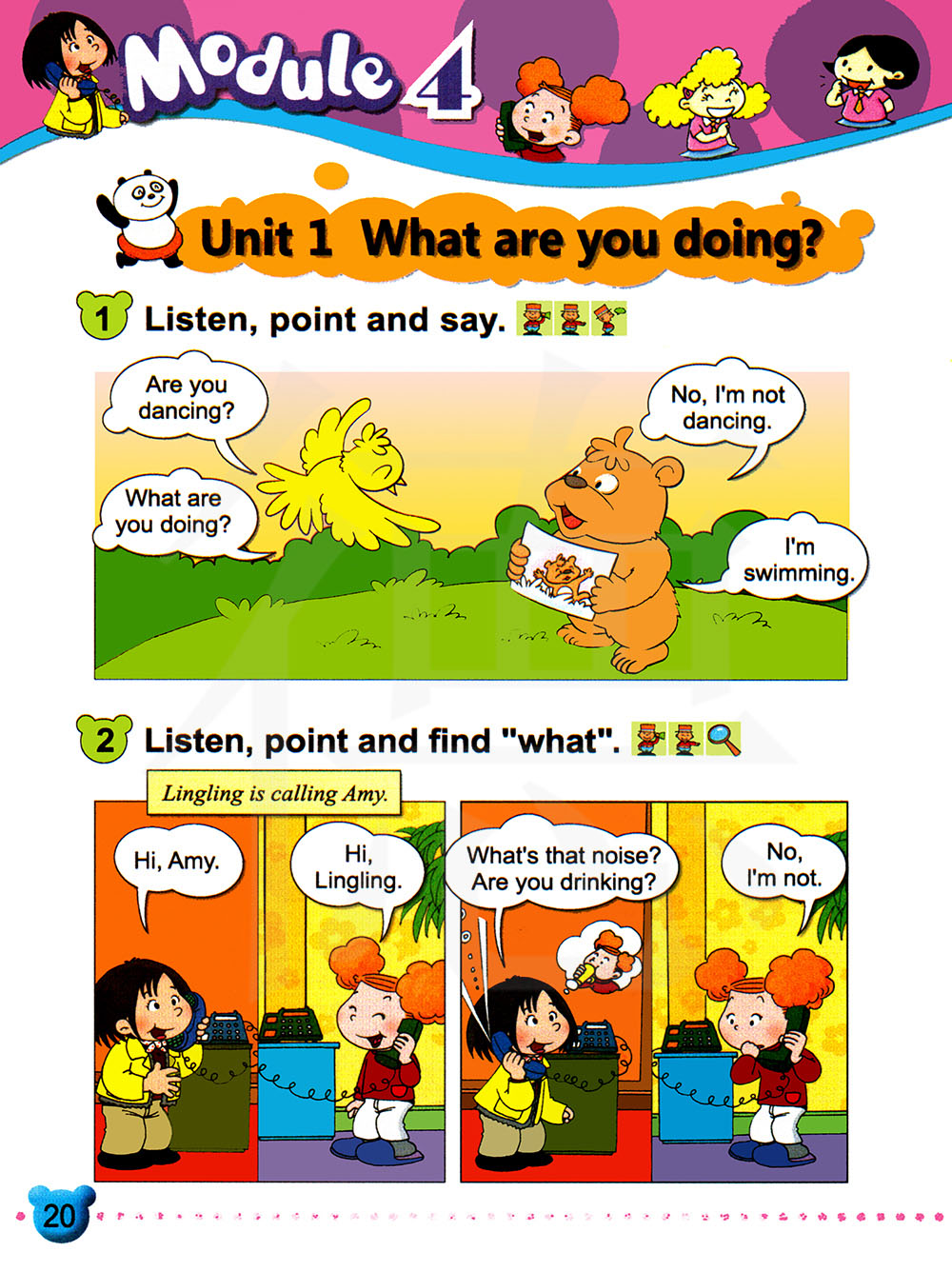 1.能够运用句型“ What+be(am/is/are)+ 主语 +doing ”.来询问某人正在做的事情。