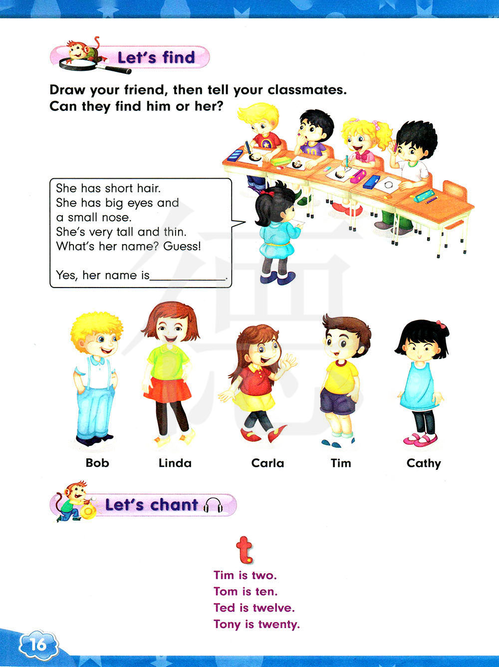 画一画你的朋友,然后向你的同学们描述。他们能找出他或她来吗?