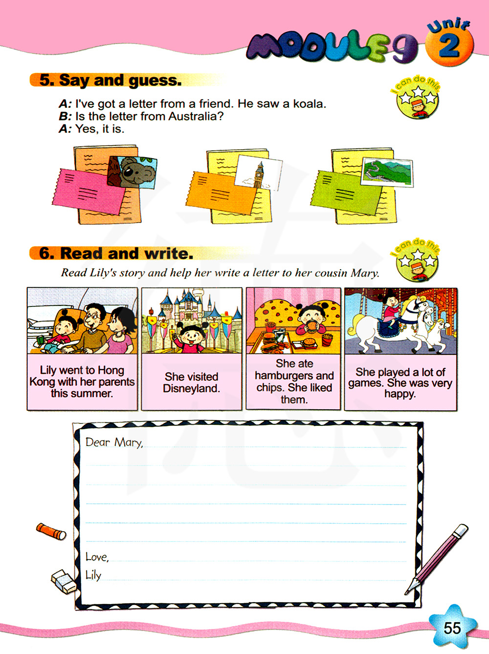 读一读莉莉的故事并帮助她给她的表姐玛丽写一封信。