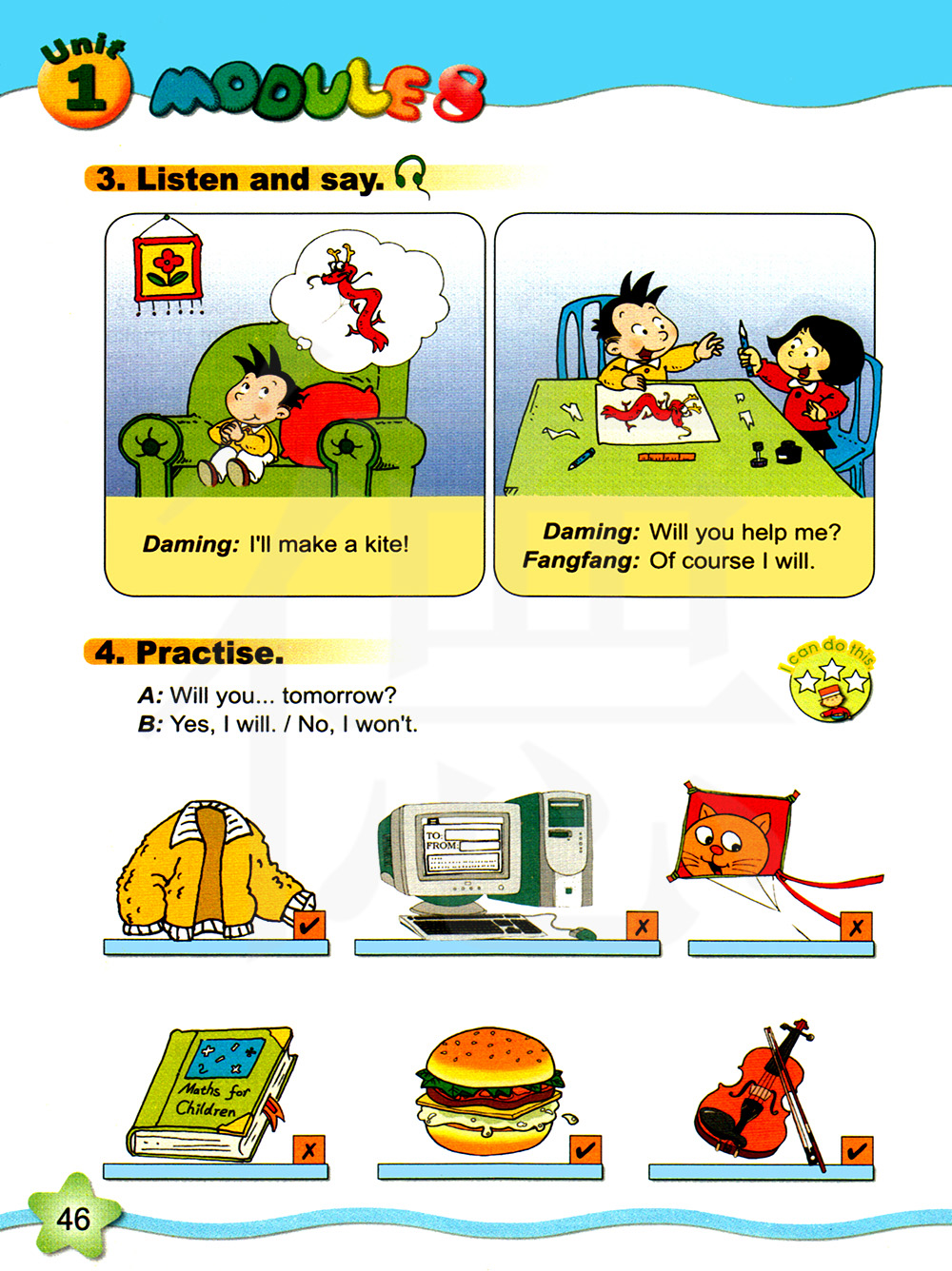 你明天会...?是的,我会/不,我不会。