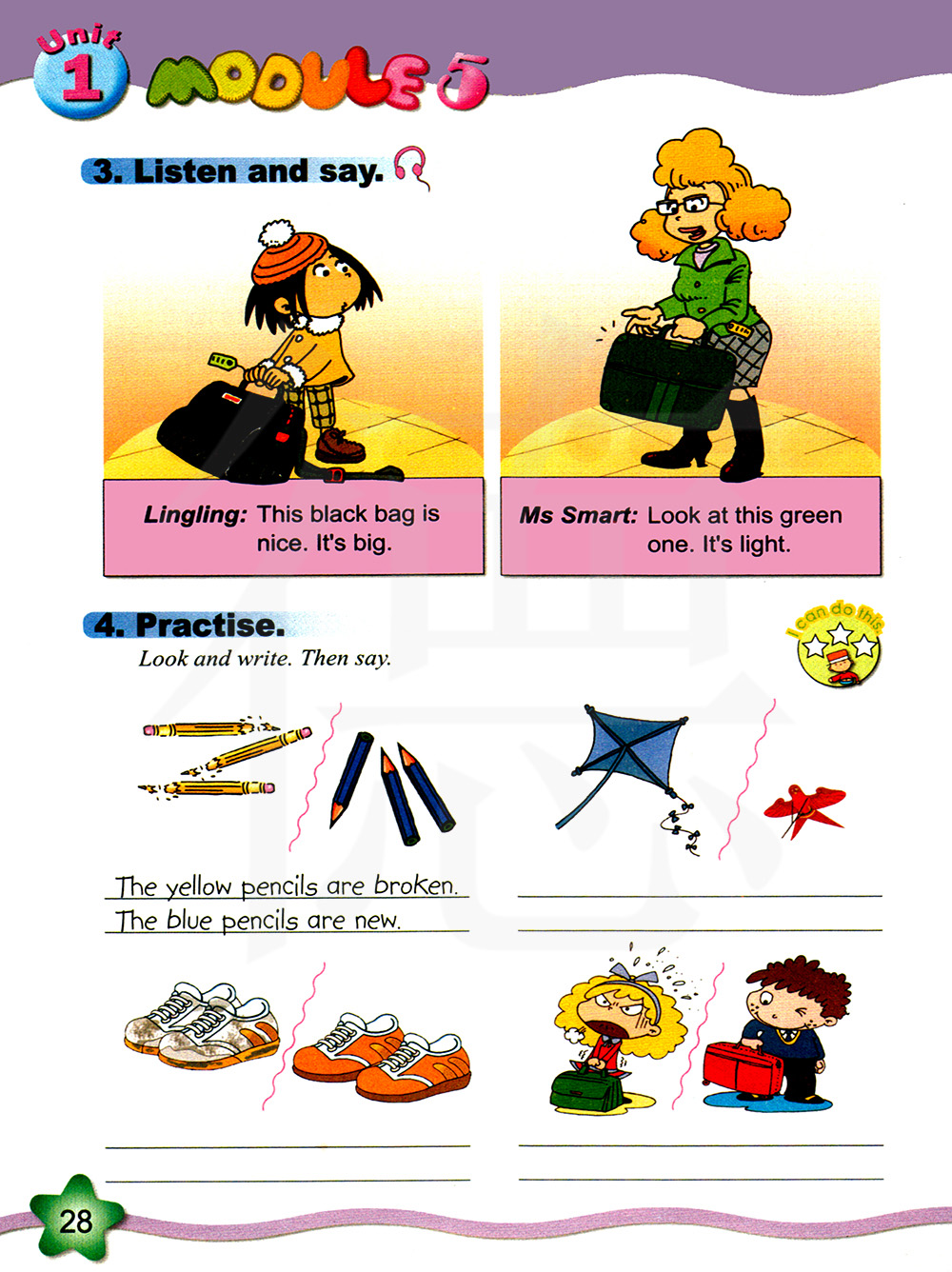 黄色的铅笔坏了,蓝色的铅笔是新的。
