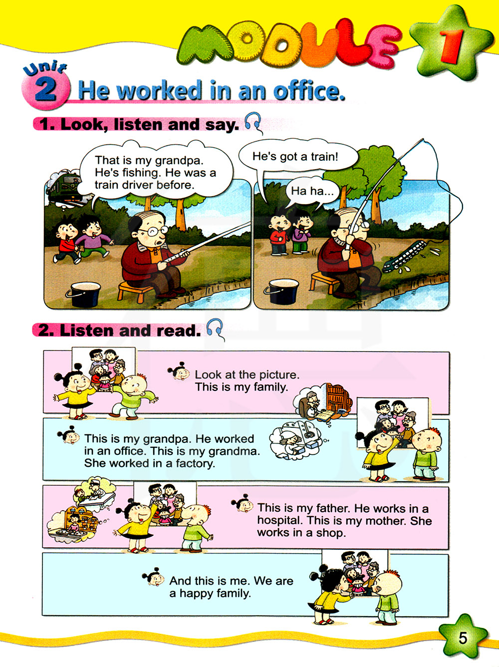 他是我爷爷,他在钓鱼,他以前是一名火车司机。