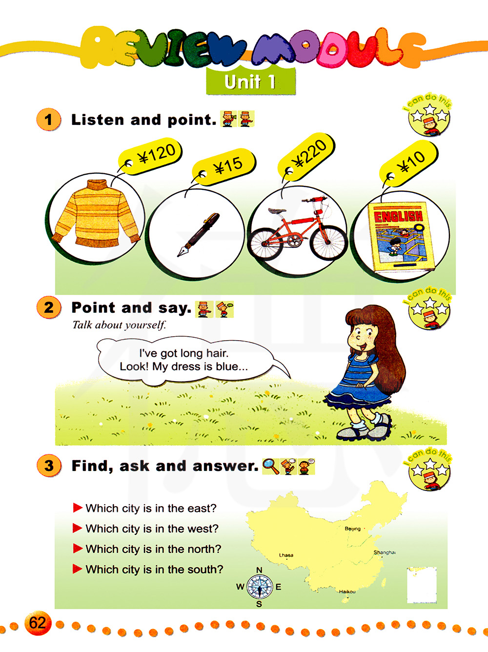 我有长头发。看!我的连衣裙是蓝色的…