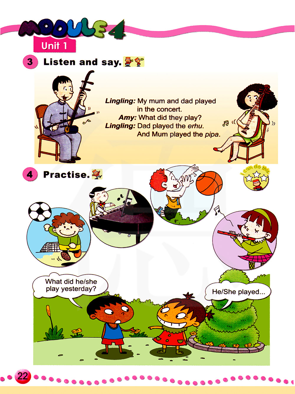 我妈妈和爸爸在音乐会上演奏。 他们演奏什么了? 爸爸拉二胡。妈妈弹琵琶。