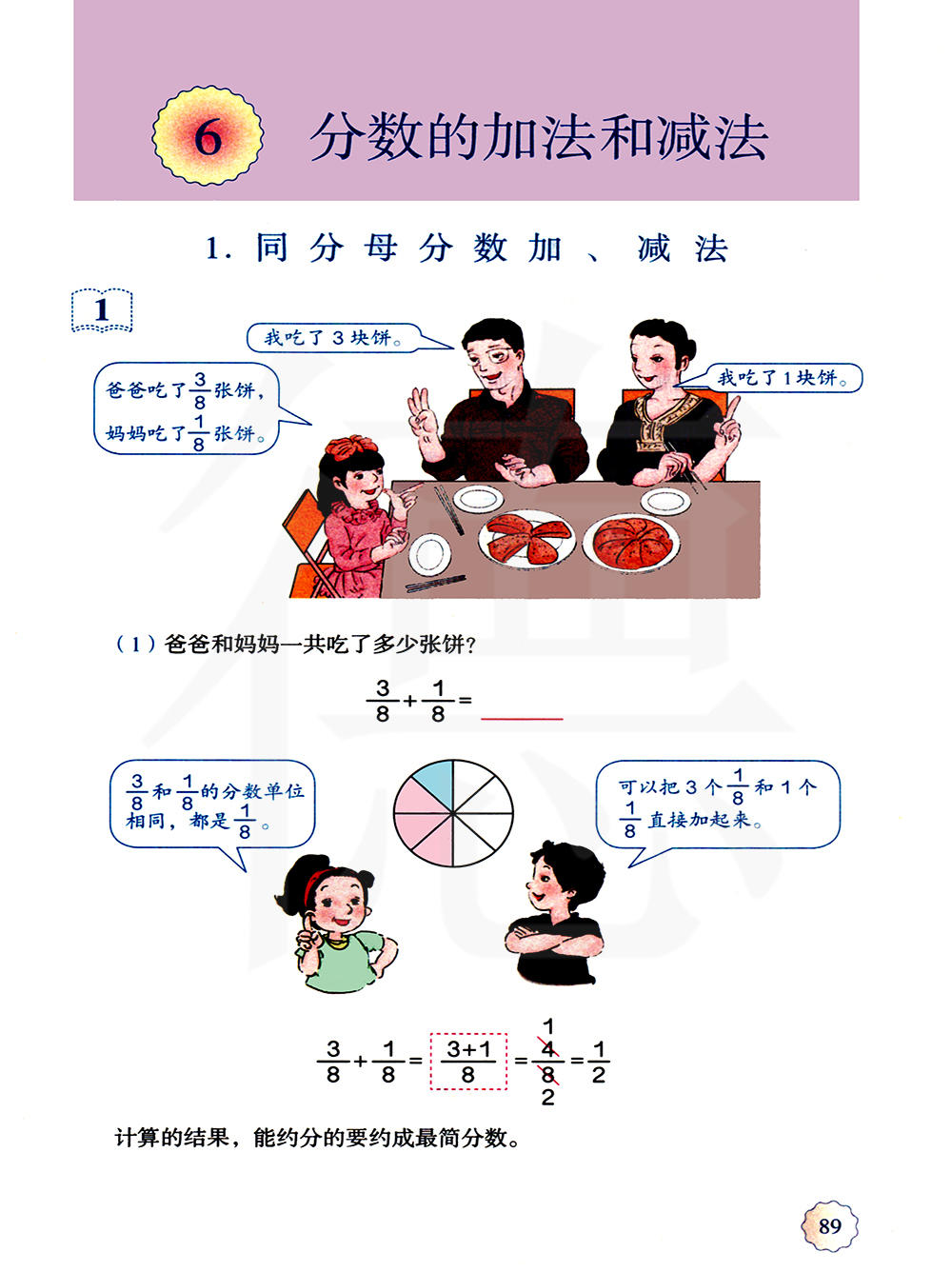 第六单元 分数的加法和减法 (1) 同分母分数加、减法 (分母不变,分子相加减)