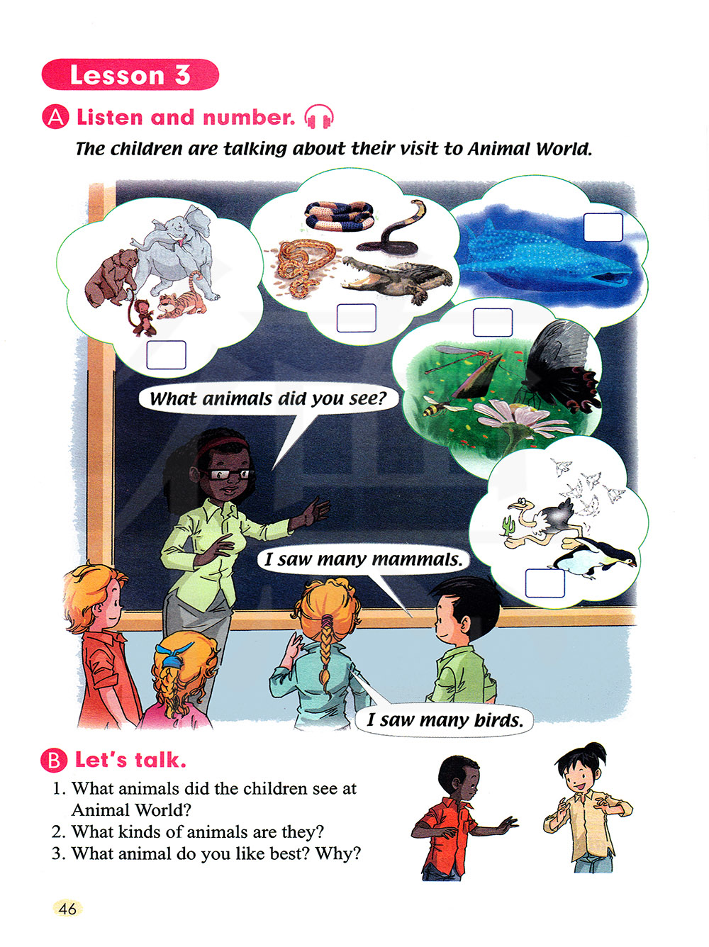 孩子们在动物世界看到了什么动物? 它们是什么种类的动物? 你最喜欢什么动物?为什么?