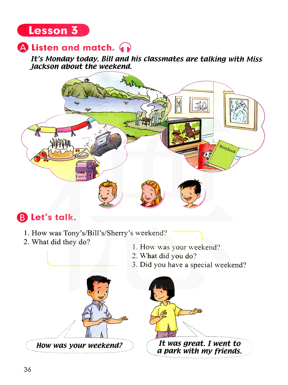 托尼的周末怎么样?比尔的周末怎么样?雪莉的周末怎么样? 他们做了什么? 你的周末怎么样? 你做了什么? 你过了一个特别的周末吗?