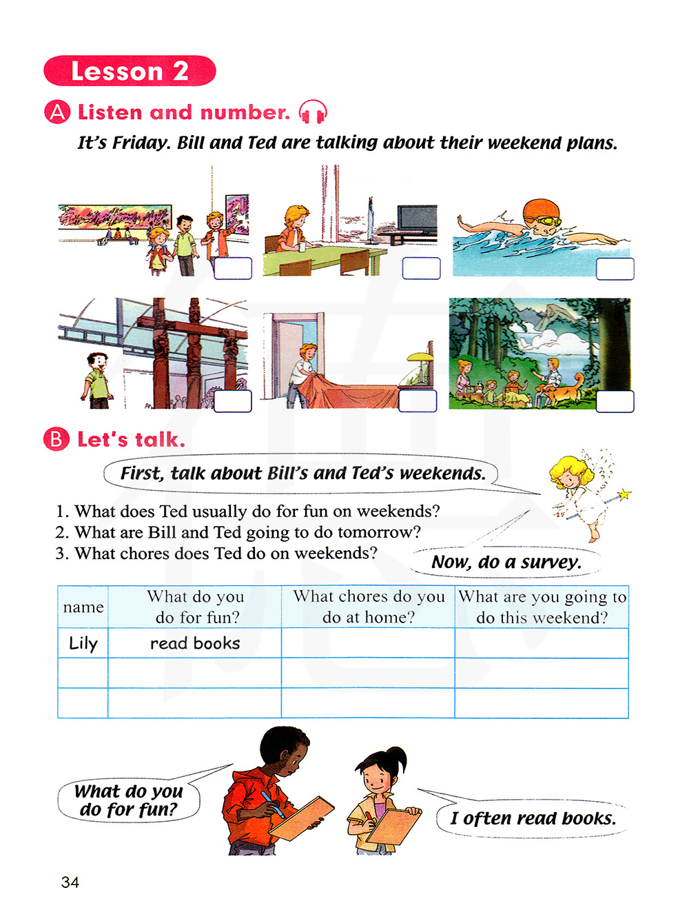 名字 莉莉 你有什么娱乐活动? 看书 你在家做什么家务? 这个周末你将去做什么?