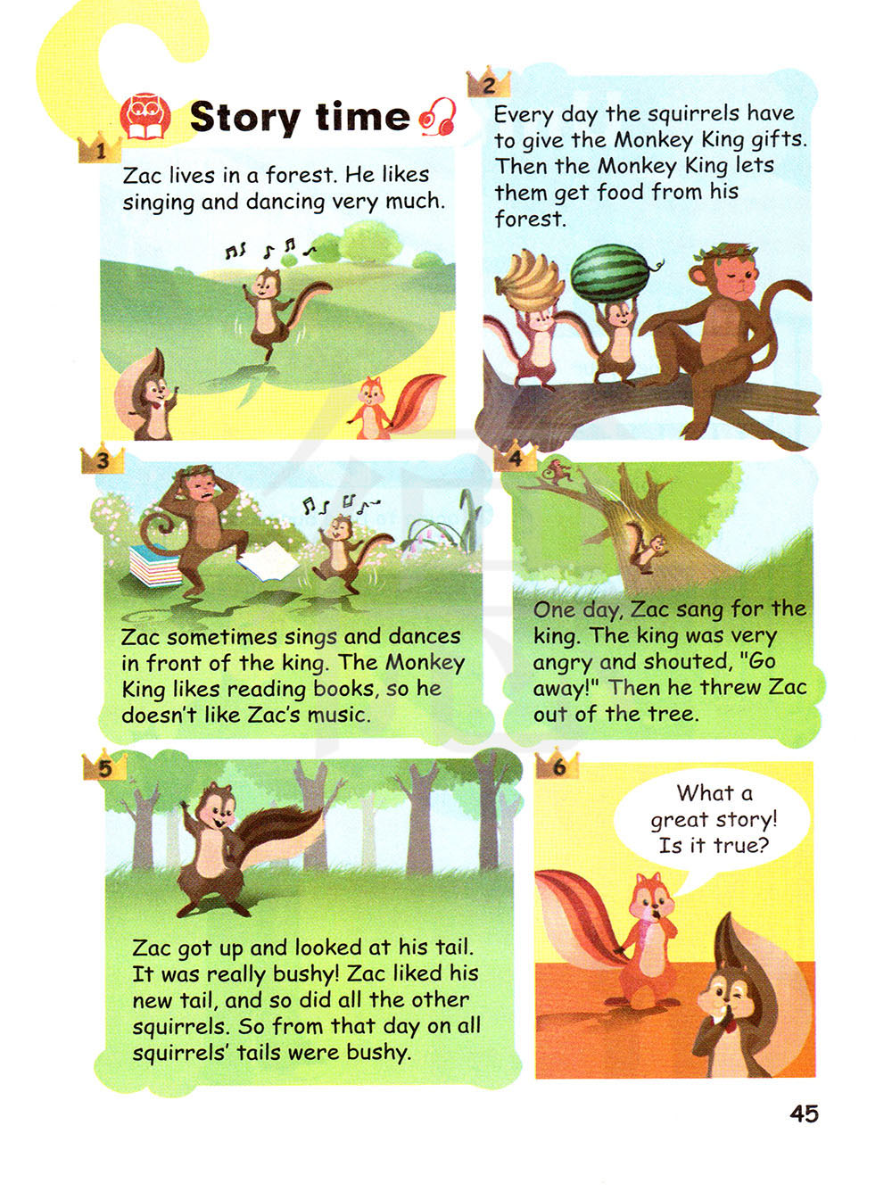 有一天,扎克给猴王唱歌。 猴王很生气并大声说“走开”。 然后他把扎克从树上扔下去。