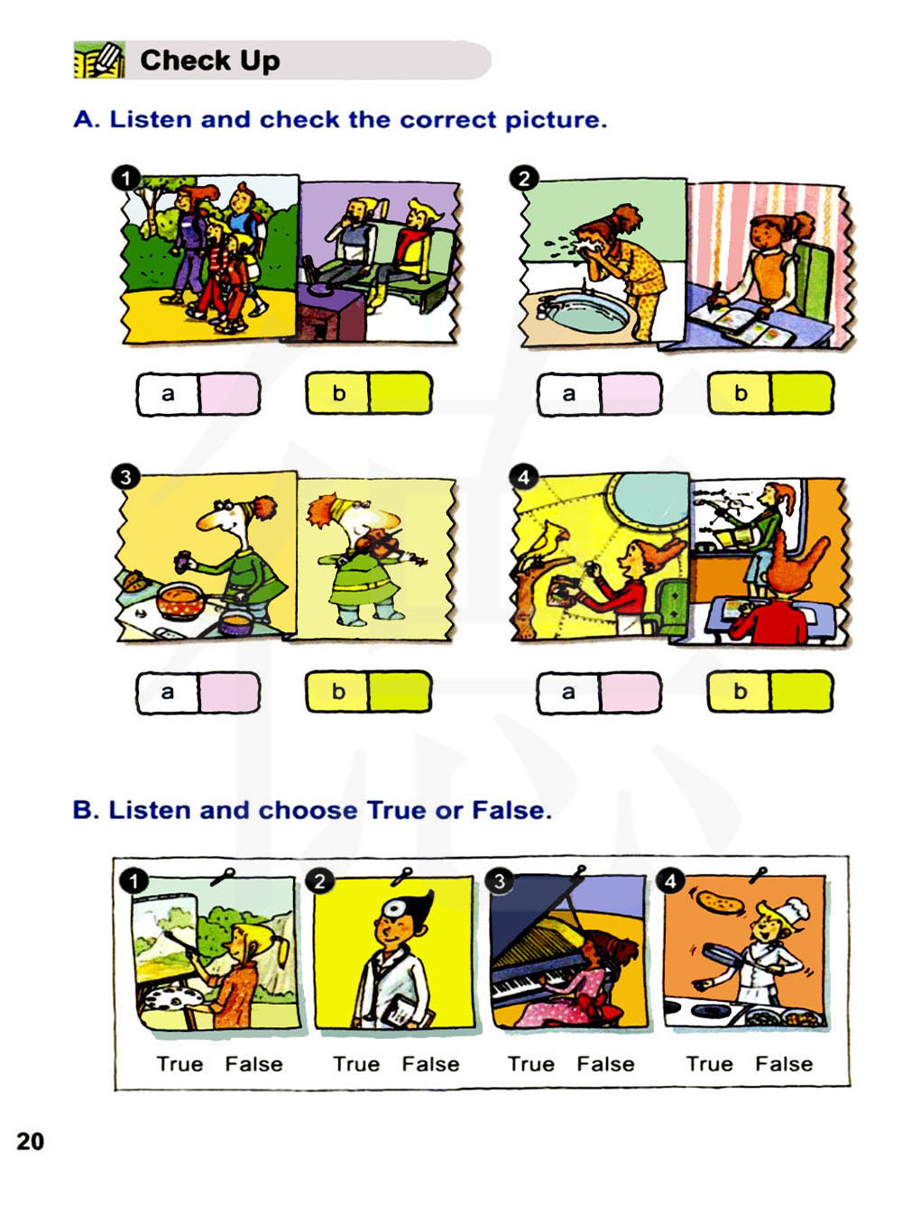 A.听录音,在正确的图片处打对勾。