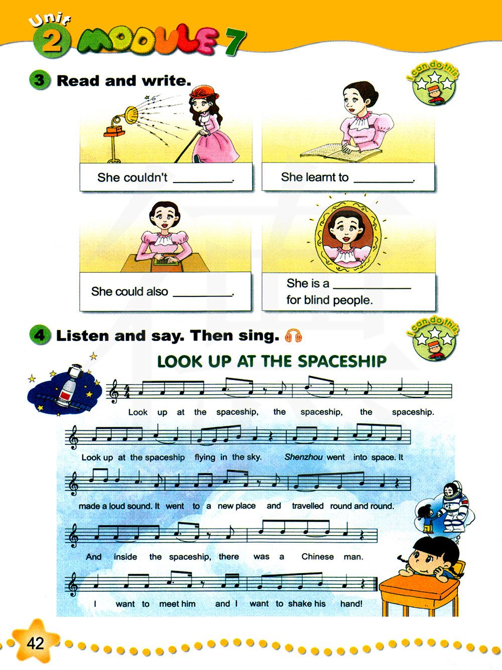 4 听录音并说一说。然后唱歌。