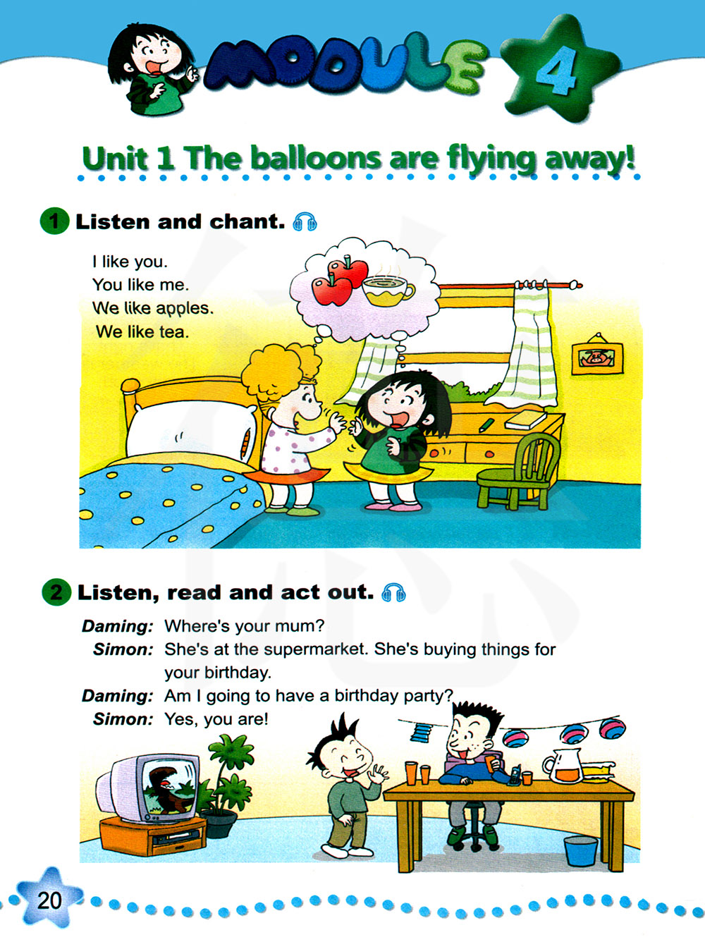 目标 1. 知识目标:能听说认读单词balloon能听懂会说“Who can help me?及回答Sorry, I can’t./I can help you” “The balloons are flying away.”并能在实际情境中运用。