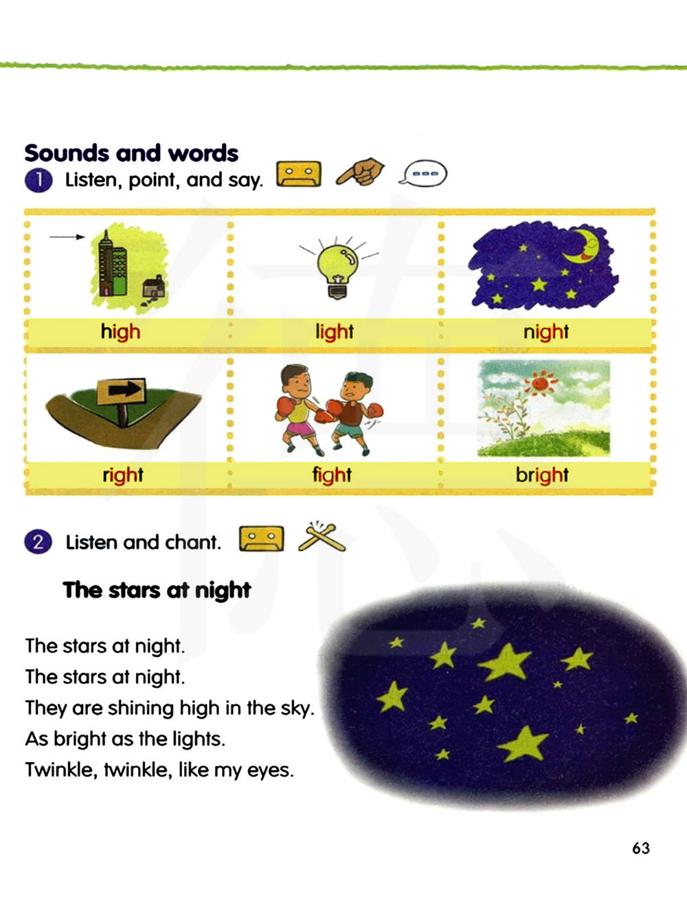 发音与单词 1 听录音,指出图片并说一说。