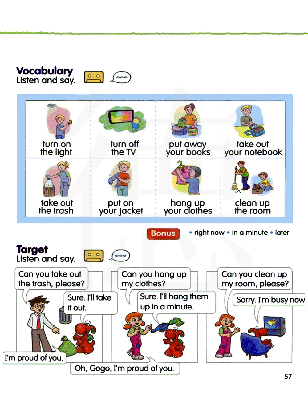 把垃圾拿出去 穿上你的外套 挂起你的衣服 打扫房间