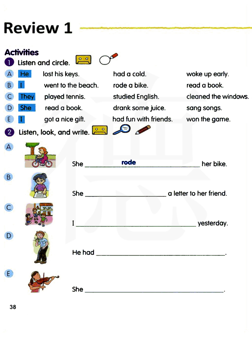 2 听录音,看图填空。