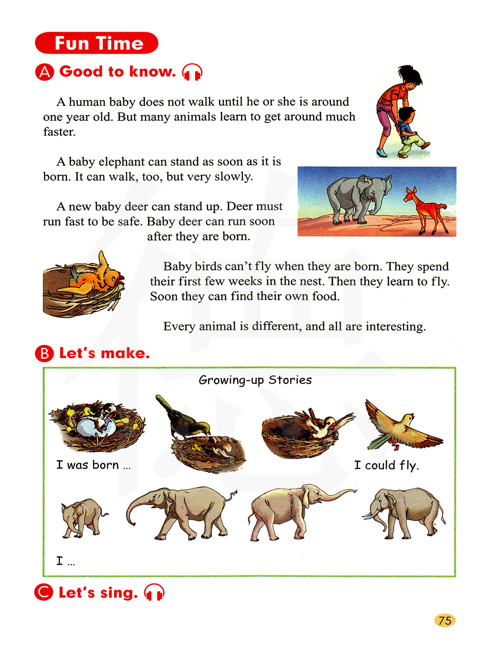人类的婴儿只有到了1岁左右的时候才会行走。 但是许多动物要比人类的婴儿更快地学会走路。