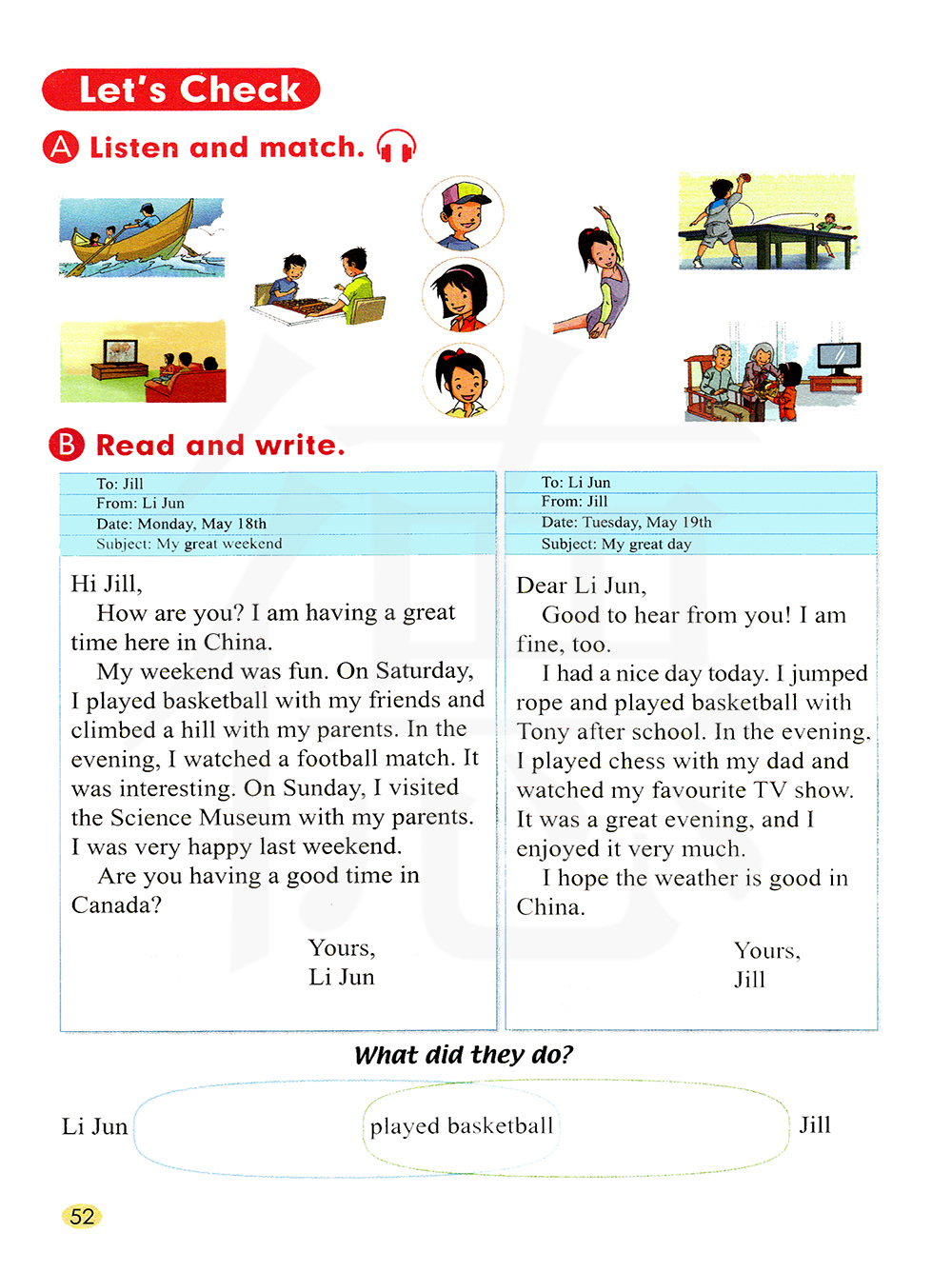 李军 爬山 看足球赛 参观科学博物馆 打篮球 吉尔 下棋 看电视节目