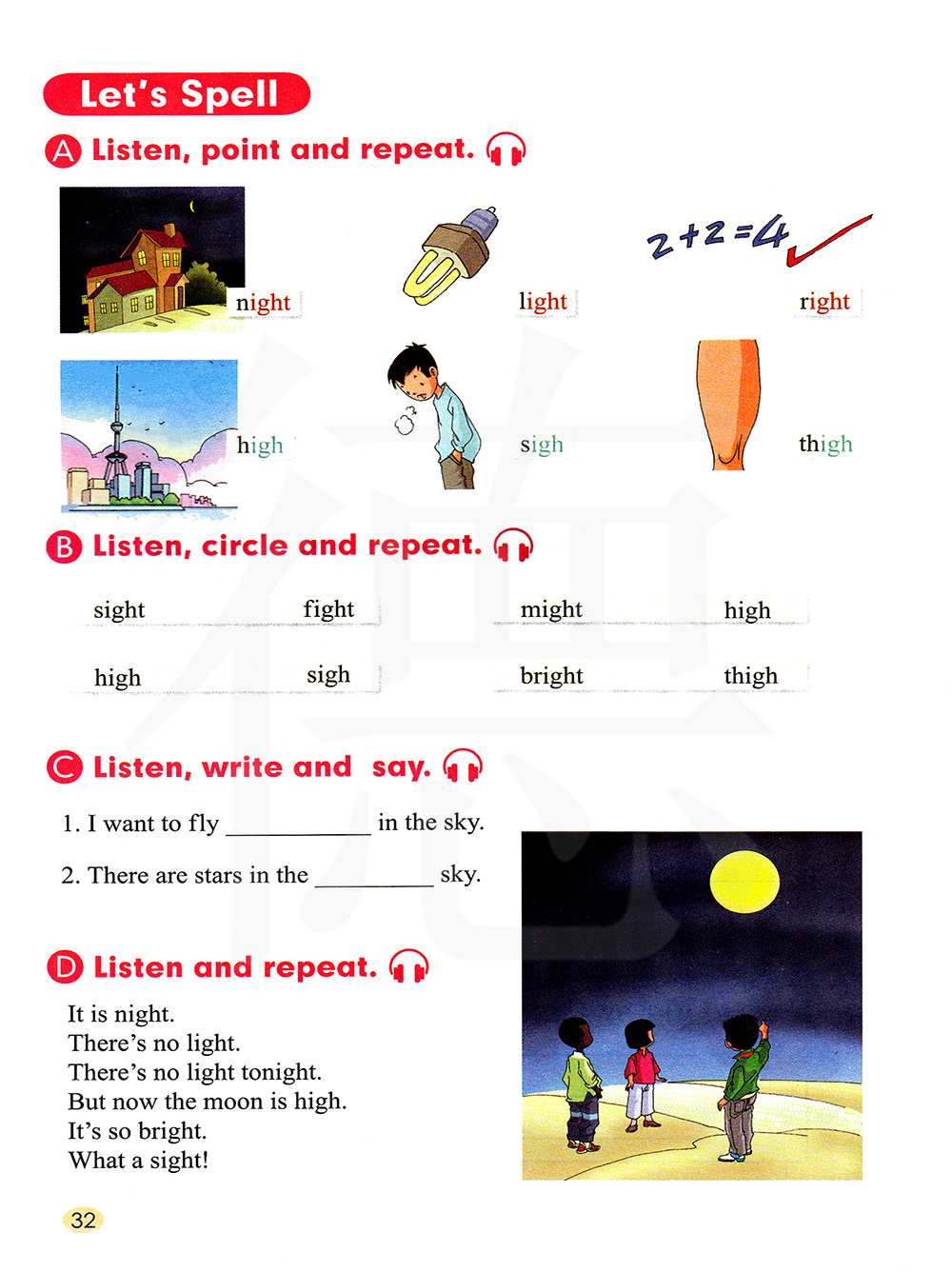 但是月亮高高在上 / 天空很明亮 / 多美丽的景色啊!
