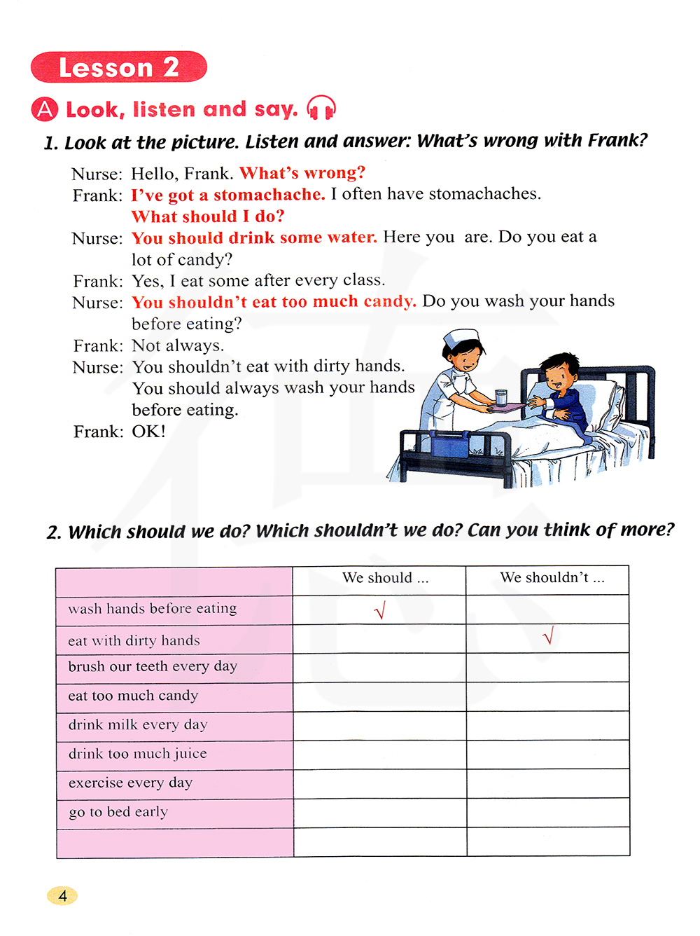 你不应该吃这么多糖。 你吃饭前洗手了吗? 不经常洗。