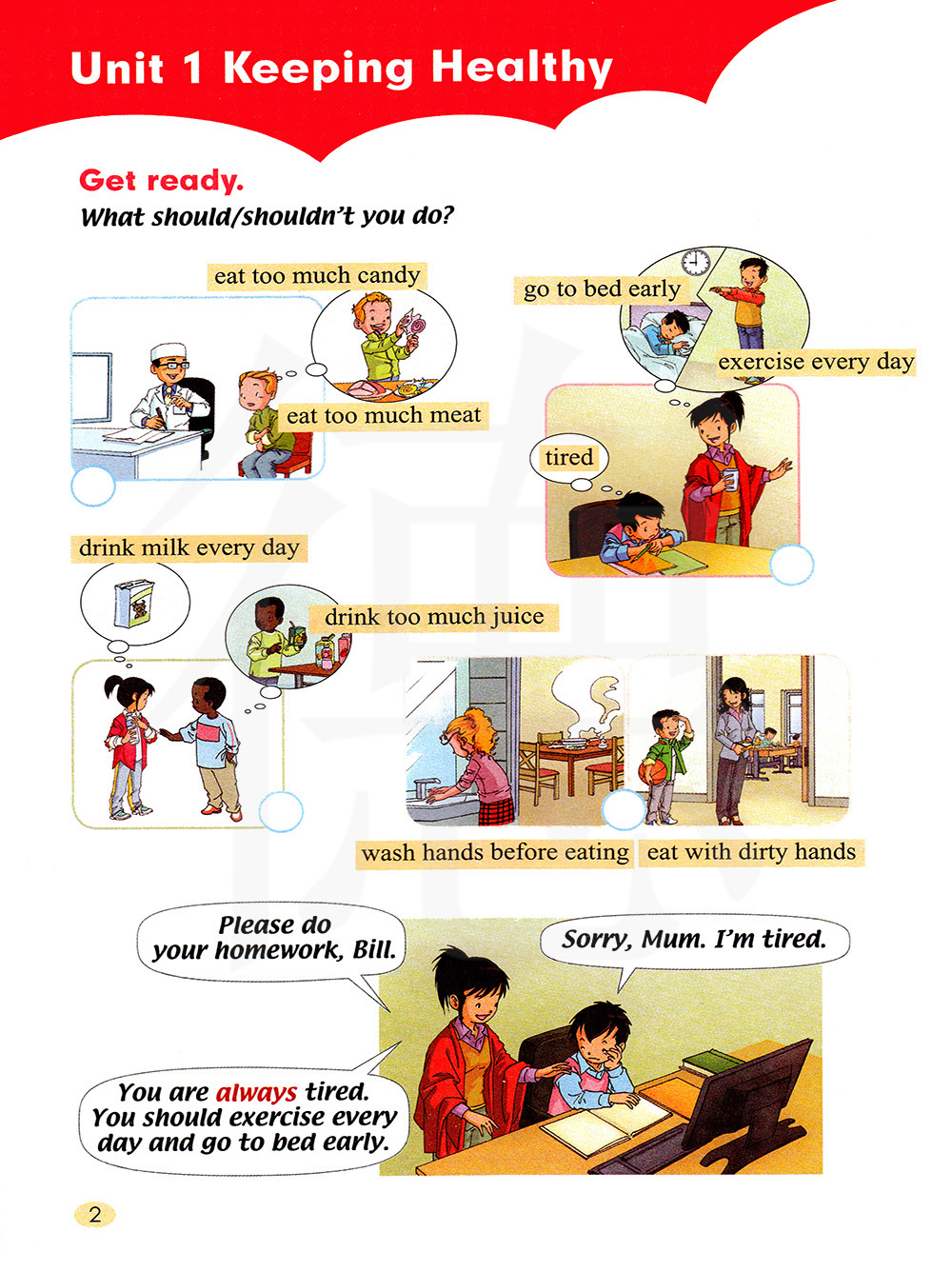 翻译: 1。学习一些食物的名称: 香肠,草莓,牛肉,白菜,西红柿,土豆,土豆片,三明治,西瓜 2。学习一些其他新单词: 比,财富少,选择 3所示。继续学习健康的饮食习惯: (1)健康比财富更重要。 (2)食物给我们能量,所以我们必须有足够的食物来保持健康。 (3)我们也必须有正确的类型的食物。 (4)不同的食物用不同的方式帮助我们。 (5),这是必要的对我们来说有健康的饮食习惯。 |