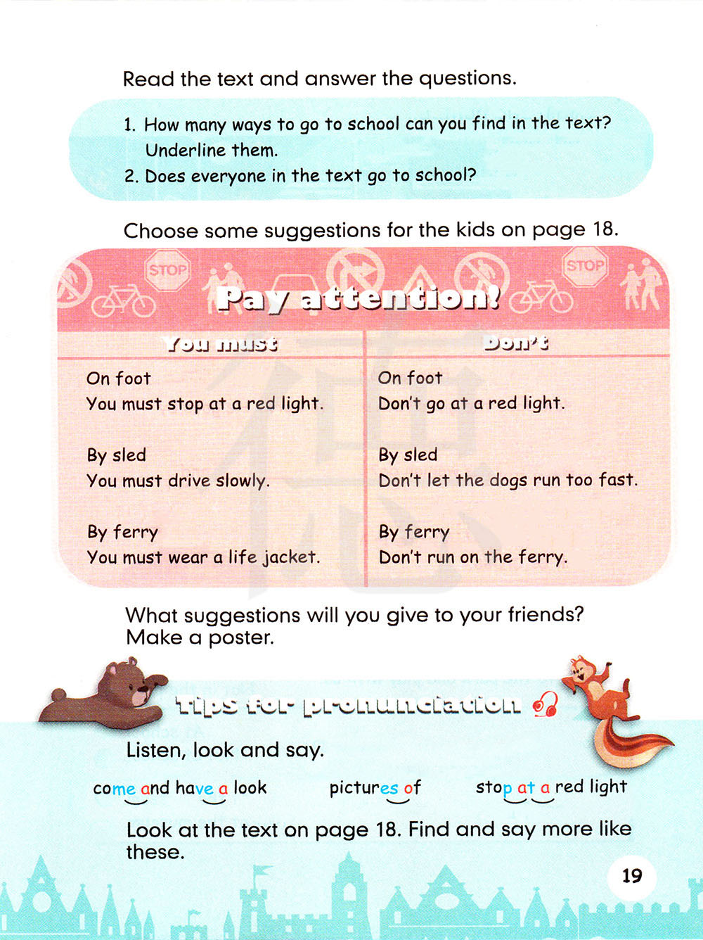 1.你在文中能找到多少种去学校的方式?给它们划上下划线。