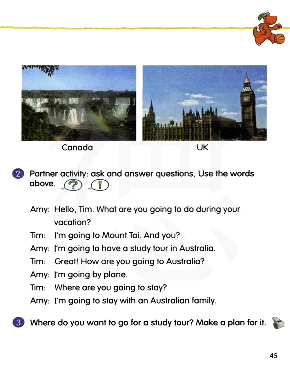 你好,提姆。假期你打算做什么? 我打算去泰山。你呢?