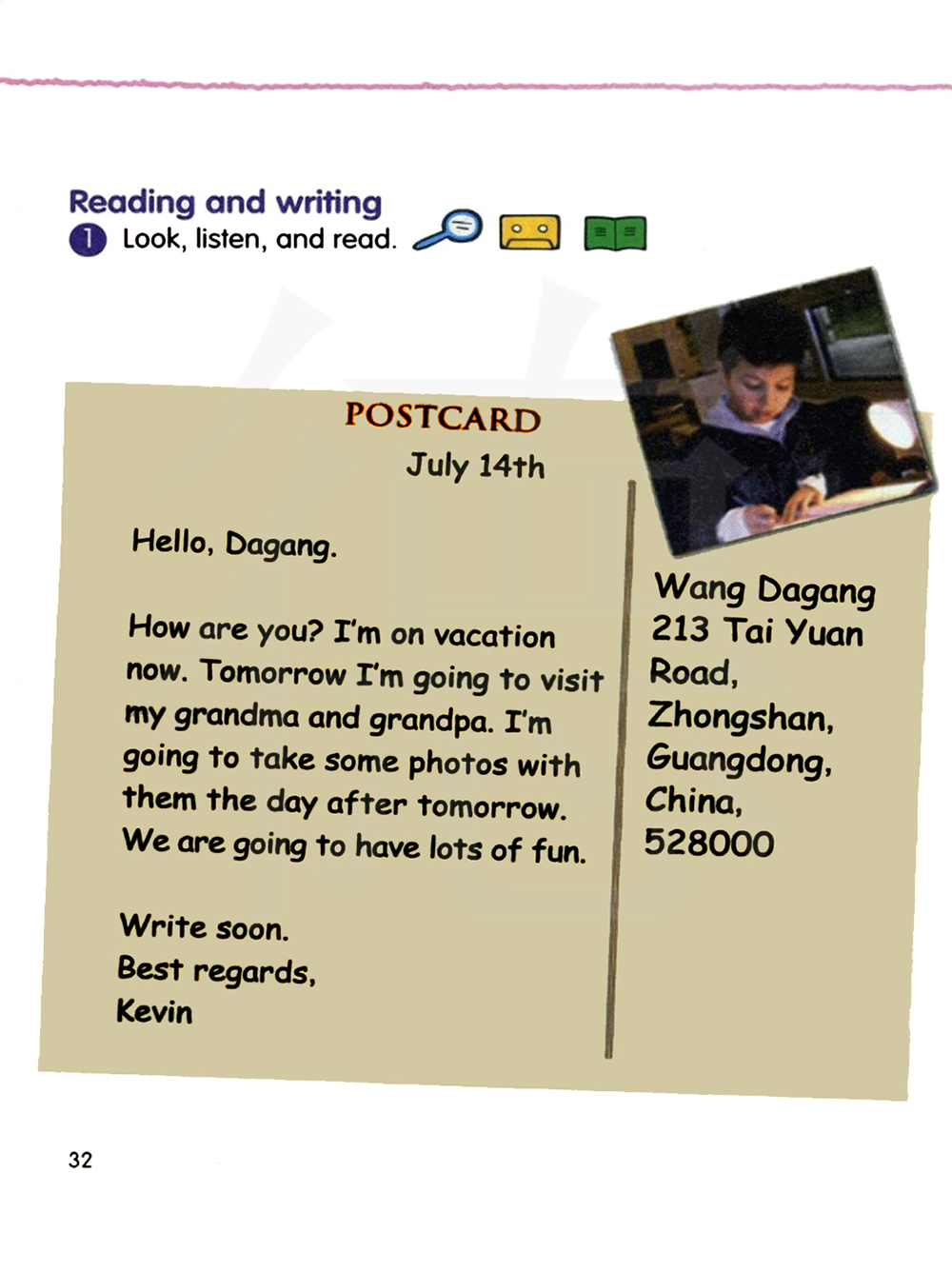 阅读并写作 1 看图,听录音并阅读文章。