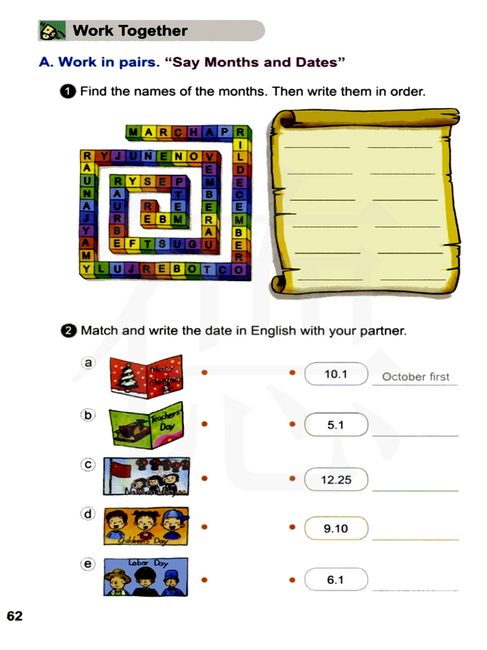 两人合作。说一说月份和日期。