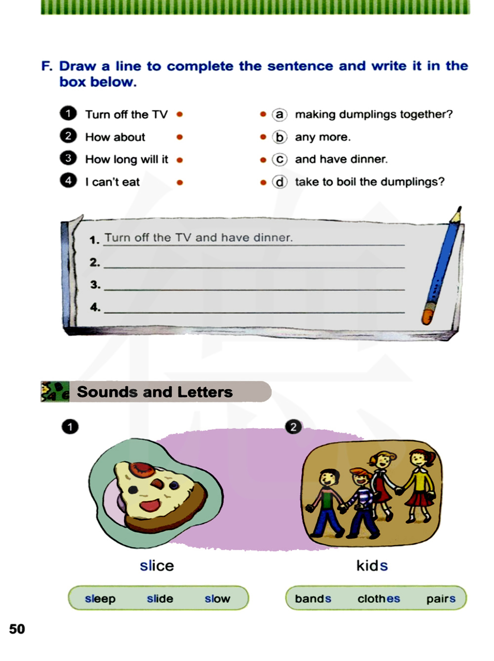 划线整合句子,然后写在下面的方格中。
