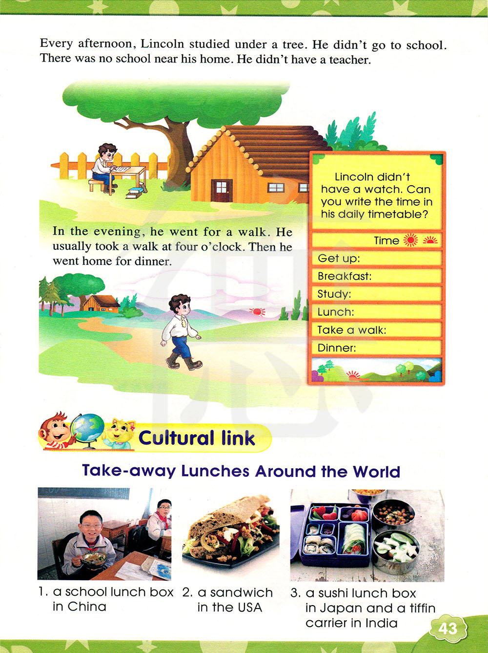 每天下午,林肯在一棵树下学习。他不去学校。他家附近没有学校。他没有老师。