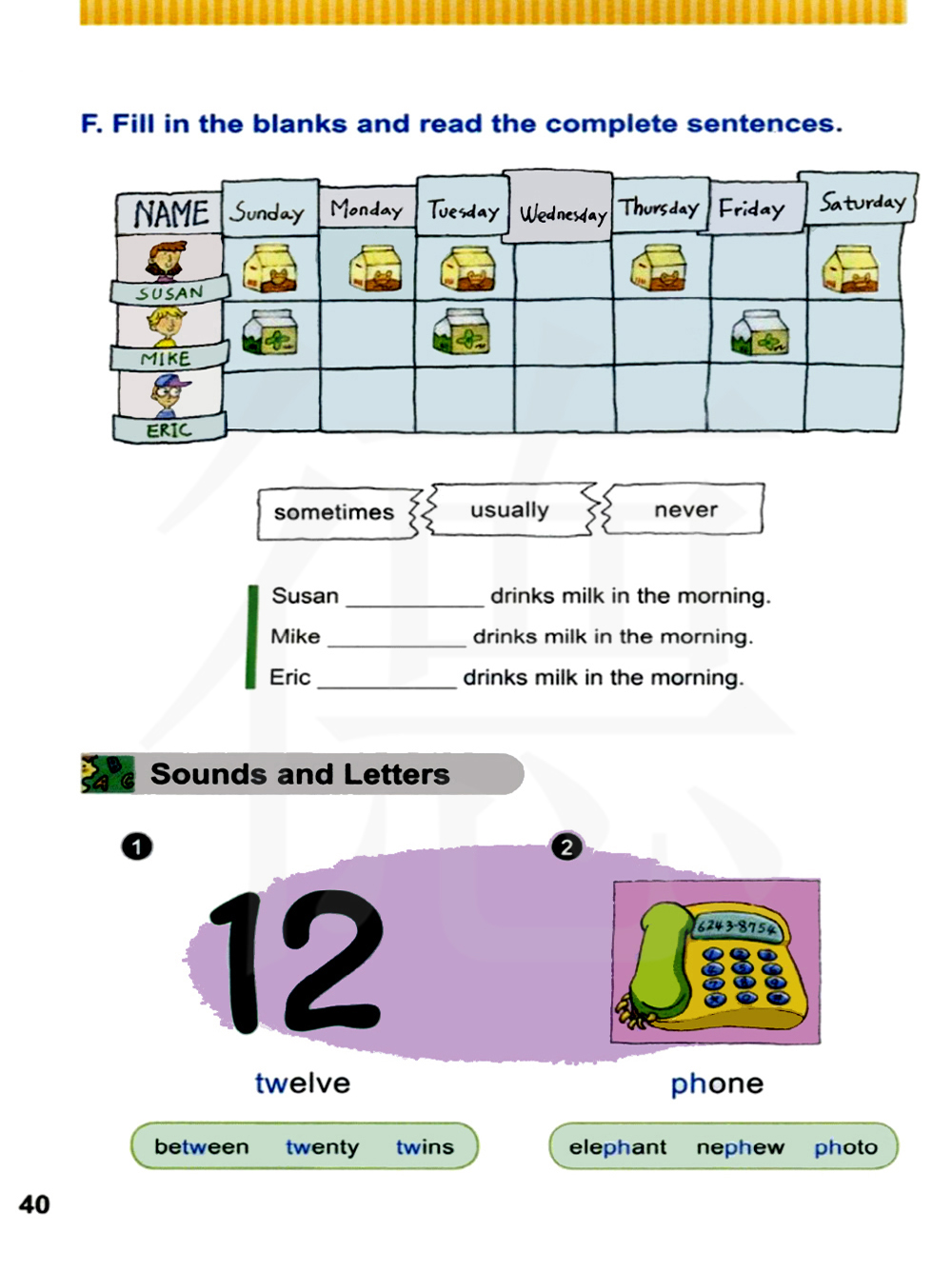 名字 星期日 星期一 星期二 星期三 星期四 星期五 星期六 苏珊 迈克 艾瑞克