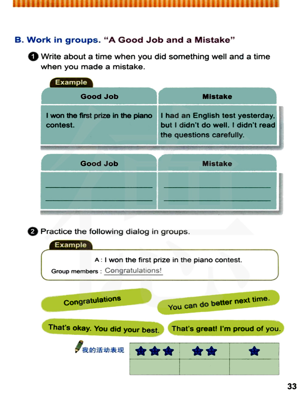 分组合作。做的好与错误